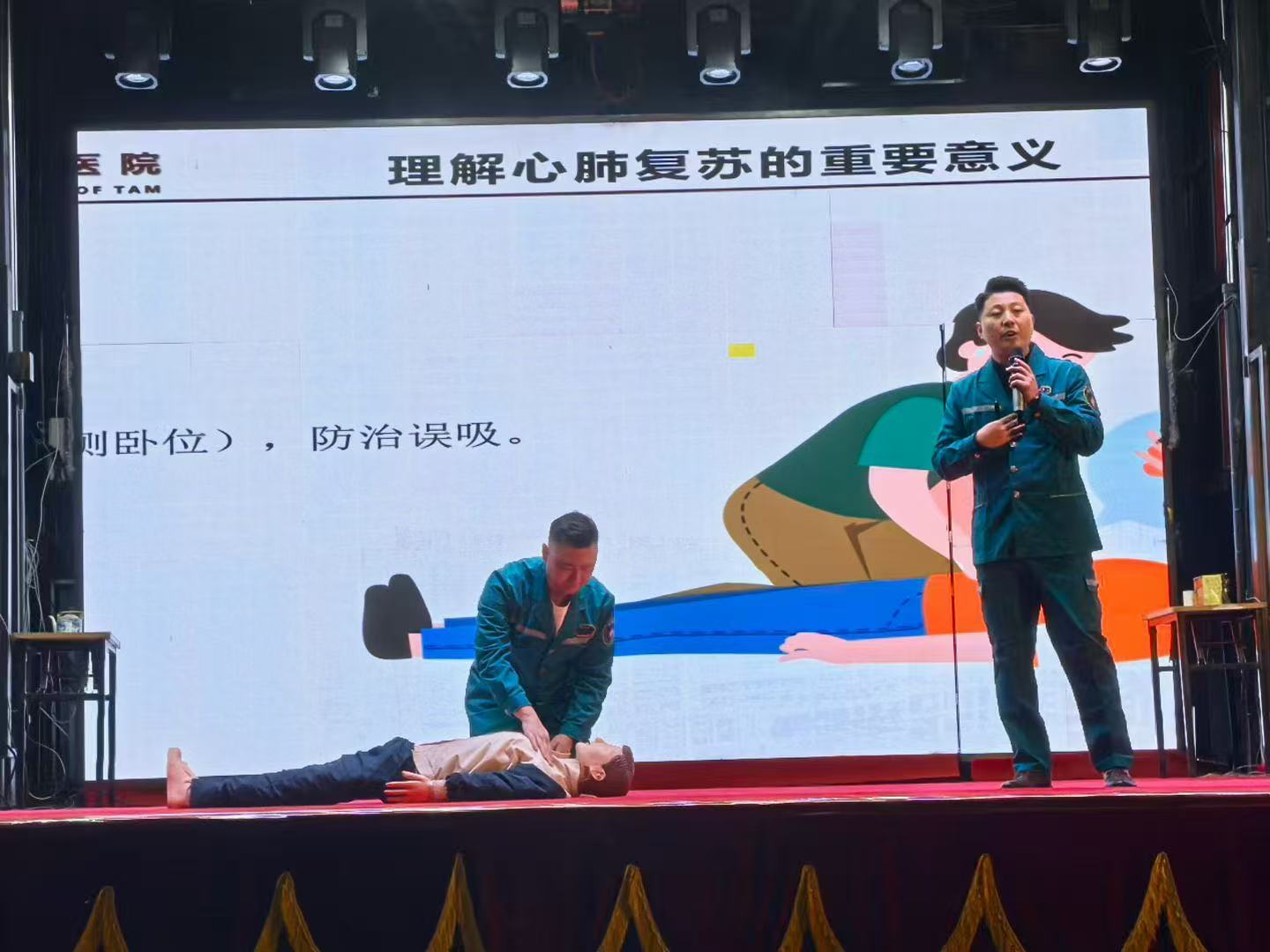 在此次活动中,急诊科医生杨登魁还为大家进行了心肺复苏现场培训。杨登魁医生首先详细讲解了心肺复苏的重要性和适用场景,让大家深刻认识到在紧急时刻掌握这一技能的关键作用。随后我院急诊科团队示范了心肺复苏的标准操作流程,每一个步骤都讲解得清晰明了、动作规范到位。提高了群众应对突发紧急情况的能力,为保障生命安全增添了一份有力保障。不少群众表示,这样的培训非常实用,以后遇到类似紧急情况也能出一份力。