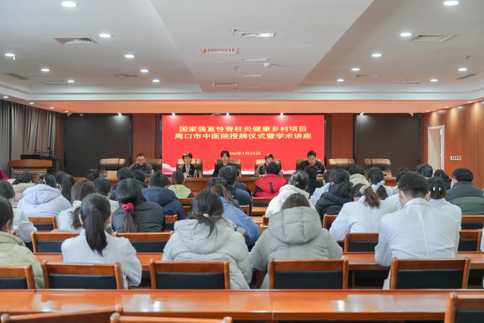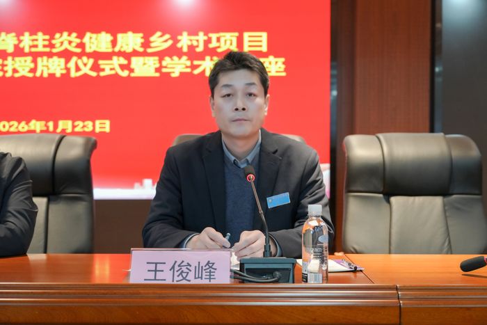 1月23日,国家强直性脊柱炎健康乡村项目揭牌仪式暨学术交流活动在周口市中医院隆重举行,周口市中医院党委委员、工会主席张红梅,党委委员、副院长王俊峰,河南科技大学第一附属医院风湿免疫科主任史晓飞,郑州大学第一附属医院贺玉杰教授,周口市中医院风湿科负责人李朝阳以及各临床、病区、医技、护理相关负责人及非值班人员出席会议,共同见证这一重要时刻。会议由党委委员、副院长王俊峰主持。