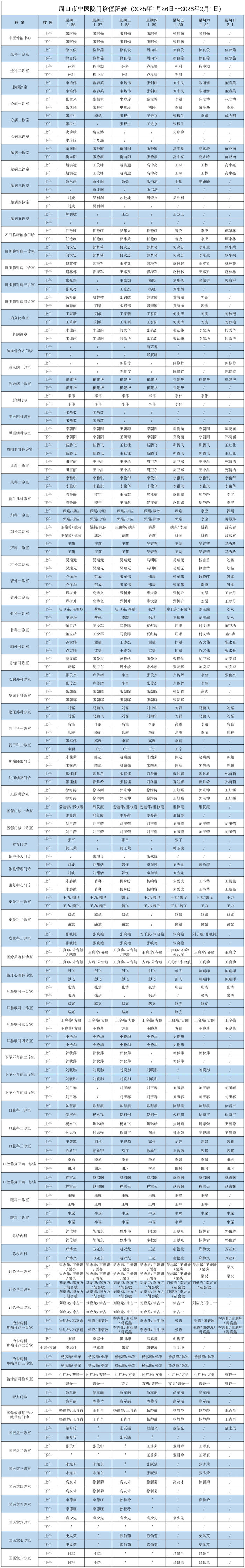 门诊出诊医师一览表