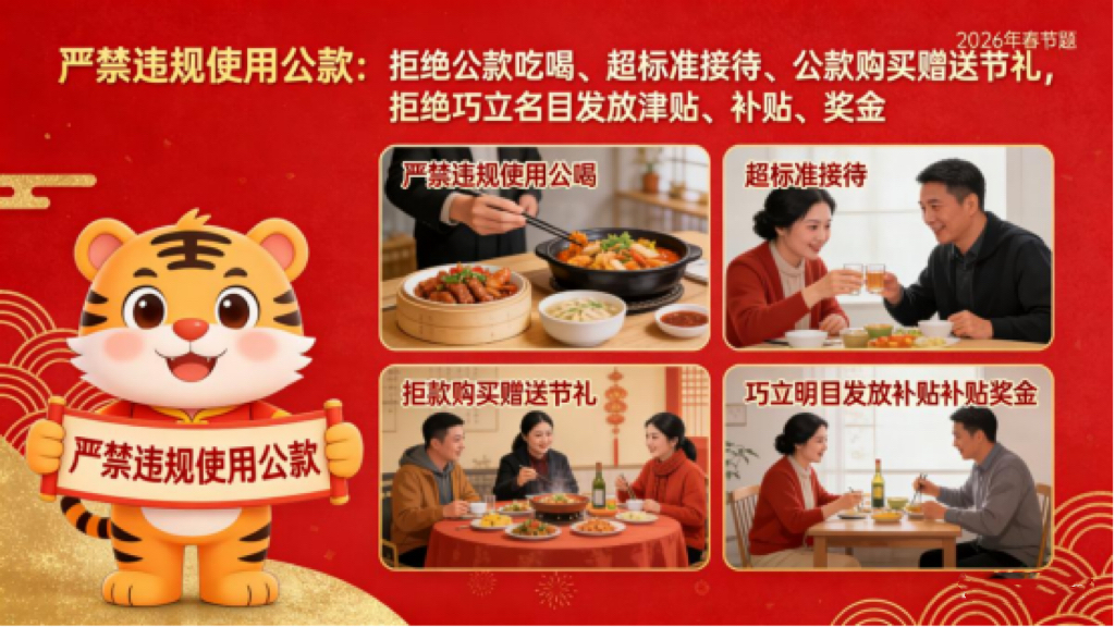 2.严禁违规使用公款:严禁公款吃喝、超标准接待、公款购买赠送节礼。