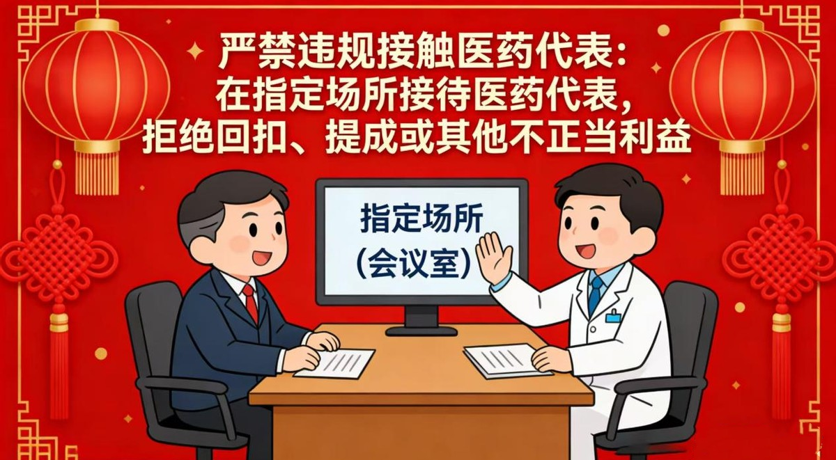 6.严禁违规接触医药代表:严格在指定场所按制度接待医药代表,不接受其回扣、提成或其他不正当利益。