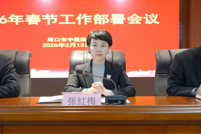 为切实做好2026年春节期间各项保障工作,确保医院安全平稳运行、医疗服务不断档、党风廉政不松懈,2月13日下午,周口市中医院召开春节工作部署会议。党委副书记、院长毛国璋,党委委员、工会主席张红梅,党委委员、纪委书记蔡华文,党委委员、副院长王俊峰及全院中层干部及相关科室负责人参加会议,会议由张红梅主持。
