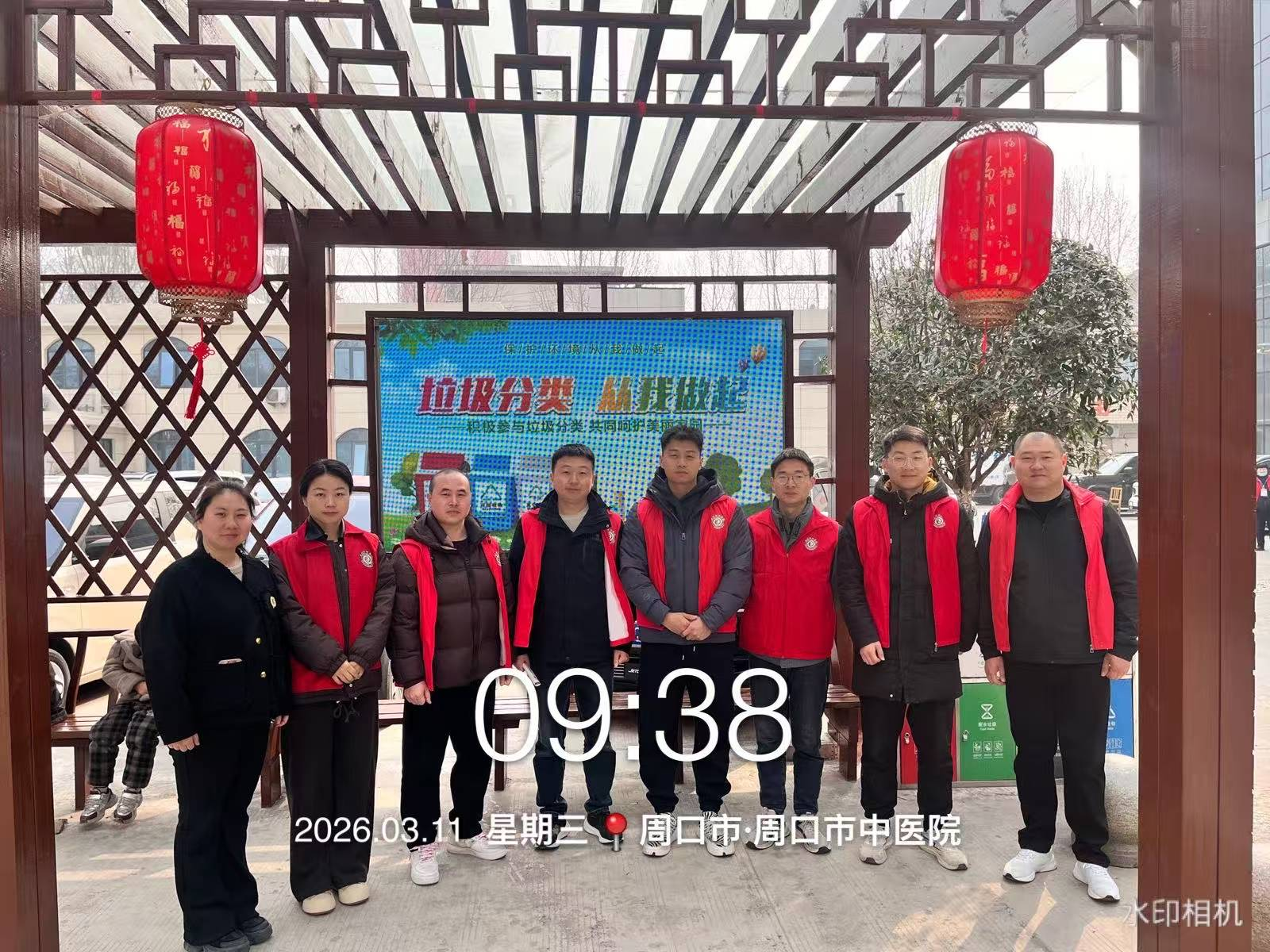 为进一步倡导绿色环保理念,规范医院垃圾分类管理,提升全院职工、患者及家属的垃圾分类意识,营造整洁、有序、绿色的就医环境,2026年3月11日上午,周口市中医院总务科志愿者们在医院大厅、院内广场等人员密集区域开展垃圾分类主题宣传活动,面向医护人员、患者及家属、安保保洁人员等群体开展精准化科普引导。