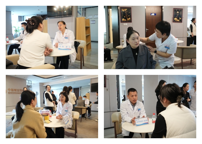 与科普讲座同步进行的义诊环节,氛围热烈而有序。医护专家们分工明确、耐心细致,热情接待每一位前来咨询的职工,详细询问既往病史、查看相关病历,针对常见疾病与慢性疾病的预防、诊断及治疗提供个性化专业建议,同时现场开展多样化中医特色体验服务,让职工近距离感受中医药的独特魅力。现场设置了针灸、刮痧、耳穴压豆、放血等中医适宜技术体验区,医护人员手法娴熟、操作精准,为有需求的职工缓解颈肩腰腿痛、失眠等不适症状;眼科专家则专门针对眼干、眼涩等常见眼部问题,提供中药热敷服务,通过温热刺激结合中药药效,有效缓解眼部疲劳,获得银行职工广泛认可。对于大家现场提出的各类健康疑问,专家们逐一耐心解答、细致指导,凭借专业的医疗知识与亲切的服务态度,赢得了现场群众的一致好评与高度赞誉。