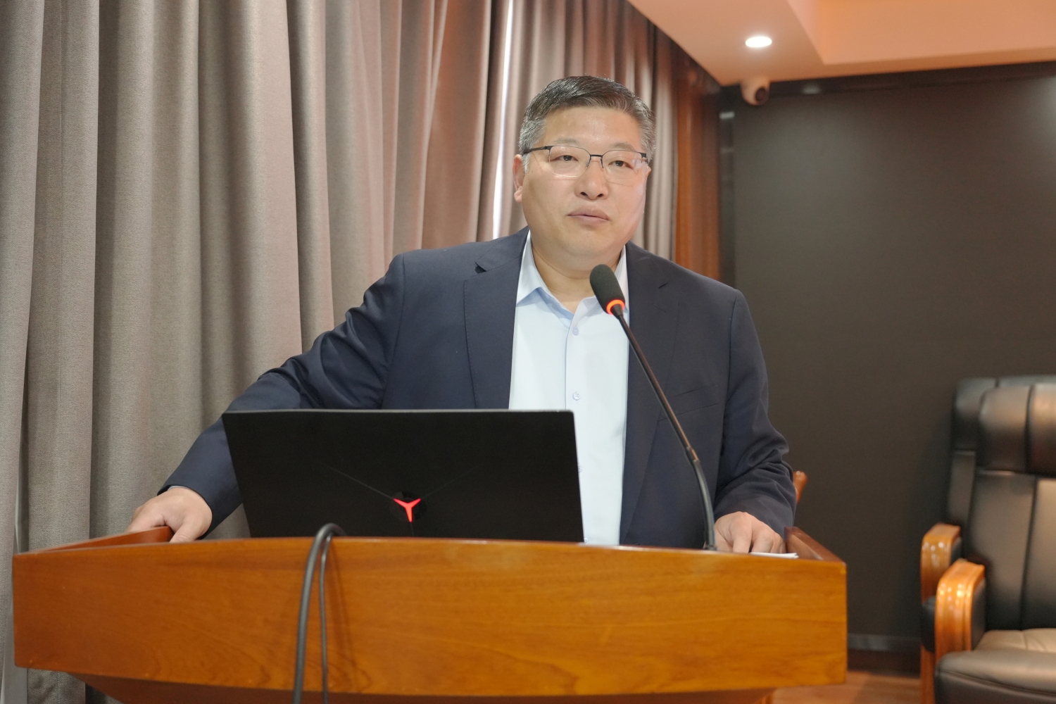 毛国璋院长代表医院对刘林霞主任的到来表示热烈欢迎和衷心感谢,他指出,本次专题培训旨在强化医院法治化管理,规范医护人员依法执业行为,筑牢医疗安全防线,保障医患双方合法权益。依法执业是医疗工作的底线,医疗风险防范是医院平稳运行、医患关系和谐的关键,希望全体参训人员高度重视、珍惜学习机会,认真聆听、做好笔记,将所学知识运用到实际工作中,确保培训取得实效。