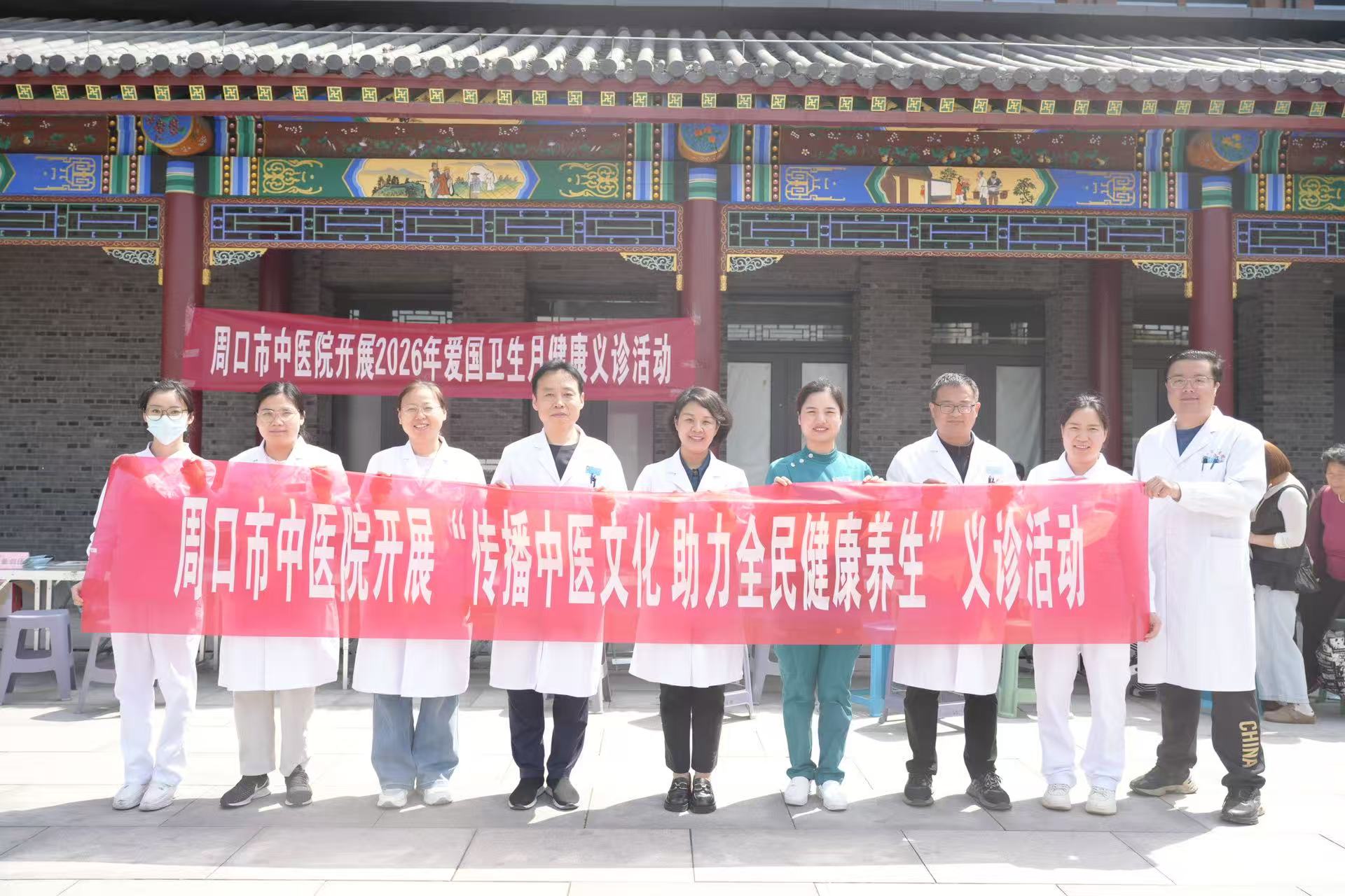 为深入贯彻健康中国建设与爱国卫生工作要求,扎实推进健康周口建设,4月17日上午,周口市中医院按照市卫健委统一部署,在关帝庙文化广场参加2026年周口市全民健康生活普及行动暨第38个爱国卫生月主题活动,以中医药特色优势为市民送上健康关怀。