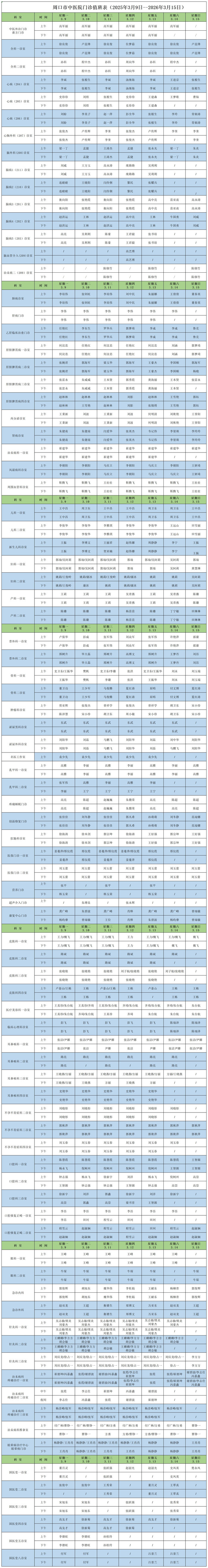 门诊出诊医师一览表