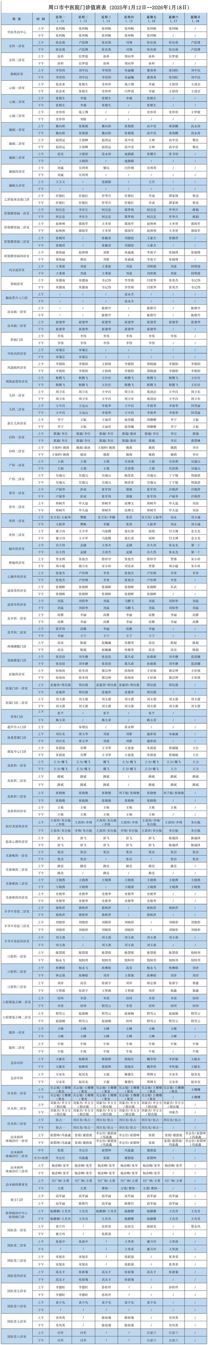 门诊出诊医师一览表