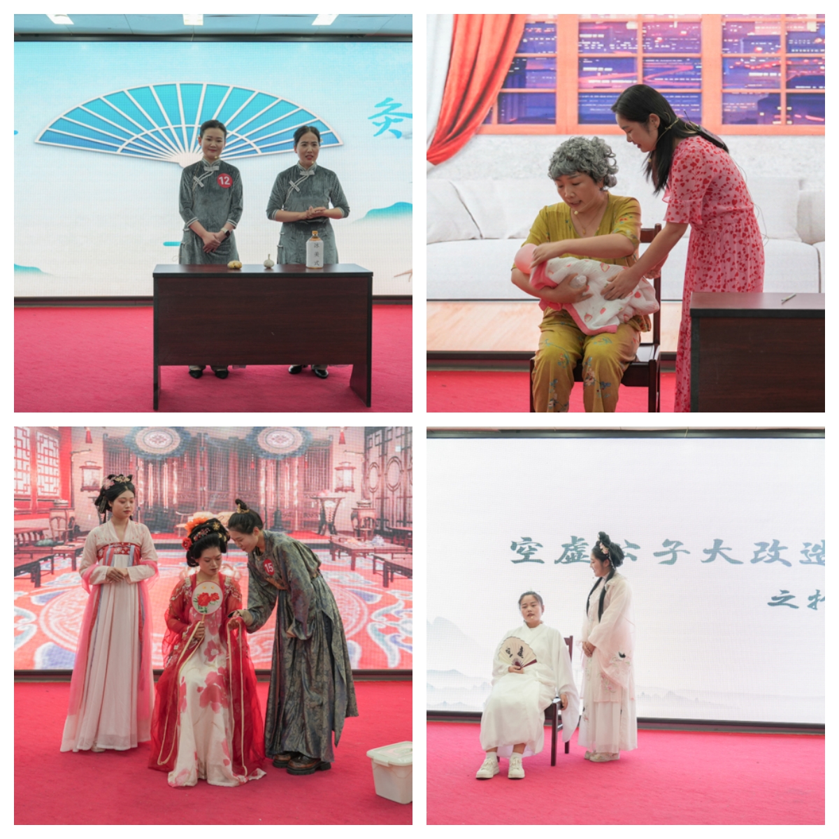 本次健康科普大赛共有51 组选手参赛,经过层层选拔,来自全院各科室的21组选手脱颖而出,在决赛现场同台竞技。比赛过程中,选手们以情景演绎、趣味讲解等多元形式,将深奥的医理转化为通俗易懂的科普内容:从“拍打八虚”养生法到“耳尖放血”应急术,从“产后中药熏洗”到“小儿发热三关”防治,选手们将中医外治、经络理论、食疗养生等知识融入生动展示,让观众在欢笑中收获健康干货。