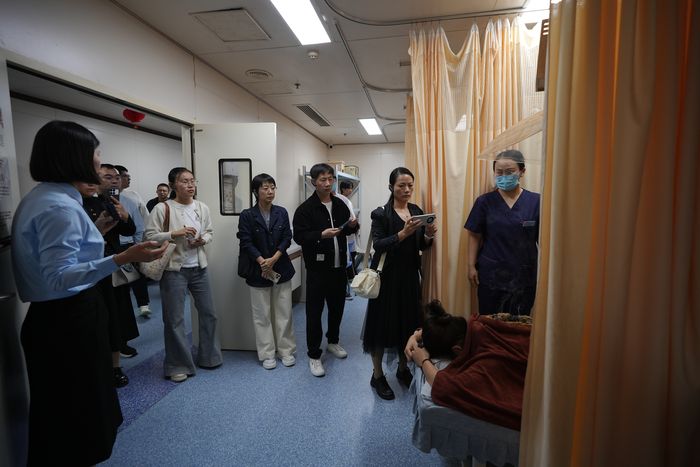 观摩的最后一站来到治未病科,这里 “未病先防、既病防变、瘥后防复”的健康理念深深吸引了学员们。在诊疗区,学员们看到医生正运用九种体质辨识系统为患者定制调理方案;学员们现场观摩了针灸、拔罐、艾灸、推拿、中药能量药泥灸等治疗方法的操作过程,医护人员详细讲解了其治疗原理和适用病症,学员们切实感受到了中医特色疗法的独特魅力。