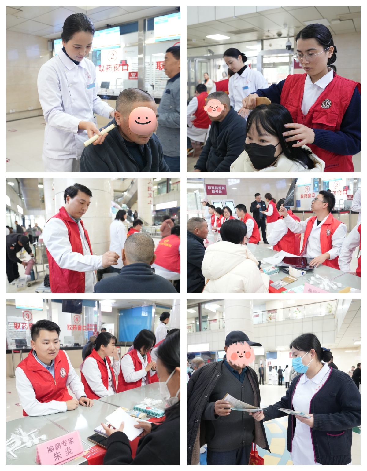 一大早,在门诊大厅活动现场医护人员热情地为前来咨询的群众服务,耐心地询问每一位群众的身体状况,有条不紊地为群众把脉问诊、血压测量、血糖检测。对于群众提出的关于脑卒中的各种疑问,医护人员们用通俗易懂的语言,结合专业的知识,深入浅出地进行解答,让大家对脑卒中的发病原因、症状表现、预防方法以及急救措施等有了更为清晰的认识。同时,医护人员还向群众发放了脑卒中防治宣传手册,控盐勺,普及“中风120”快速识别法,强调时间就是大脑的救治理念。现场医护人员还免费为患者进行耳尖放血、头部刮痧、针灸等中医特色项目,获得了群众的一致好评。