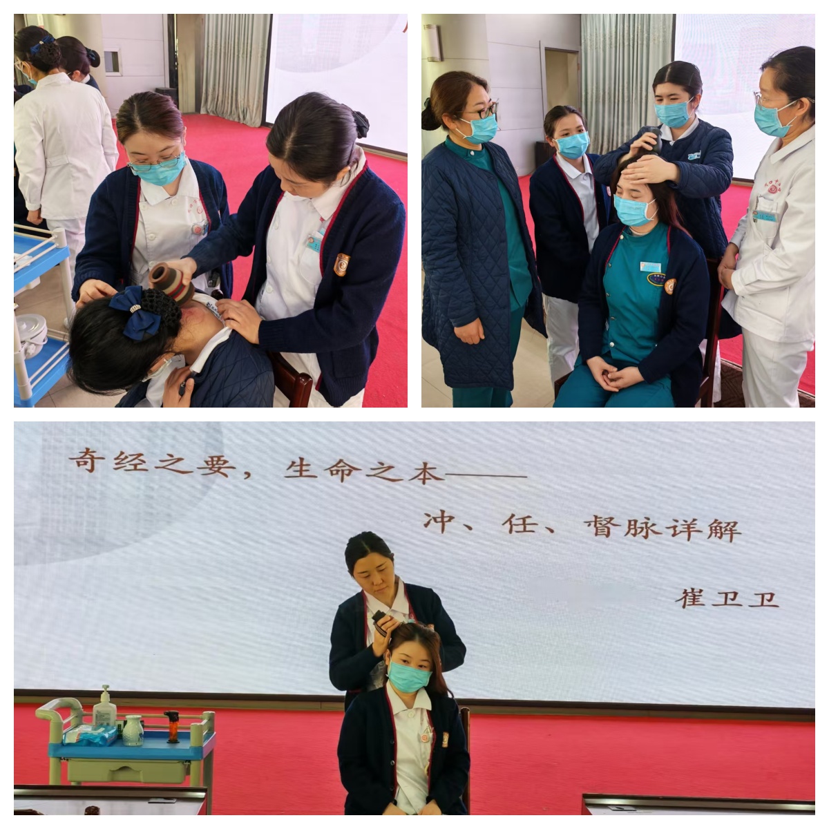 接下来开展经络冲、任、督脉的学习及重点推广中医护理技术“温灸罐”使用的专题培训与实操演练。温灸罐疗法:是将传统的艾灸、刮痧、推拿、走罐相结合的一种中医治疗技术。温灸罐疗法是以中医经络学说和皮部理论为基础,用温灸罐在表皮经络及穴位上进行刮治和熏灸以刺激体表络脉的治疗方法。