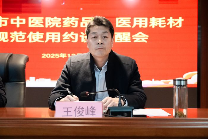 12月19日下午,周口市中医院召开药品、医用耗材规范使用专题约谈提醒会,党委委员、纪委书记蔡华文作专题讲话,各相关科室主任、护士长参会,会议由党委委员、副院长王俊峰主持。