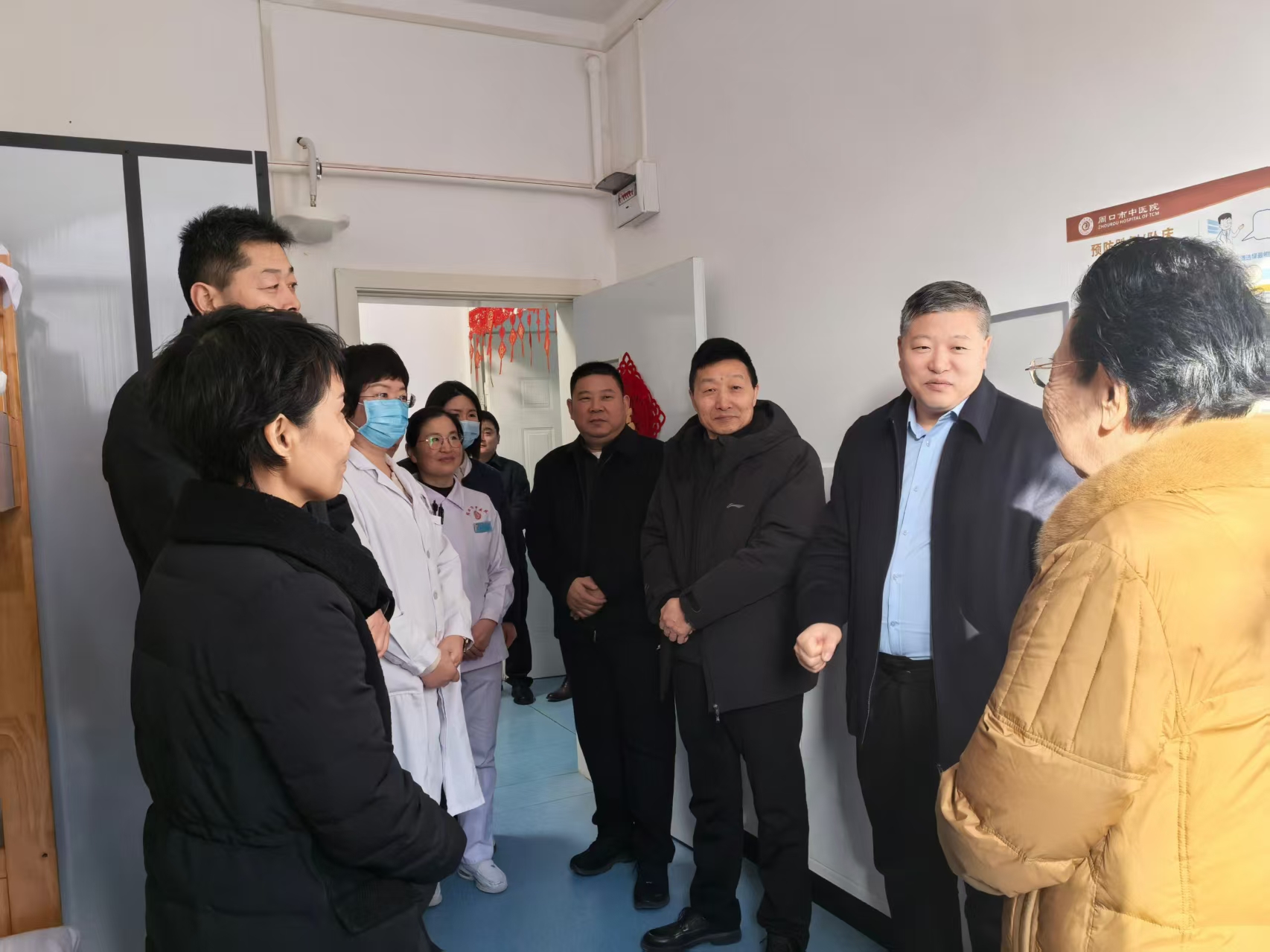 新春将至,暖意融融。2月11日上午,周口市中医院党委副书记、院长毛国璋,党委委员、工会主席张红梅,党委委员、纪委书记蔡华文,党委委员、副院长王俊峰一行,专程开展走访慰问活动,亲切看望非遗传承人韩秀梅医生。院领导始终心系高龄长者,此次慰问既是对长者的敬重关怀,也充分彰显了医院敬老爱老、传递温暖的良好风尚。