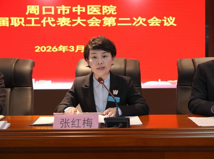 党委委员、工会主席张红梅作工会工作报告。她总结了2025年院工会在党建引领、民主管理、制度建设、职工关爱、传递温情、提升服务、文体活动、健康关怀等方面的工作实绩,展现了工会作为职工"娘家人"的责任与担当。报告明确2026年工会将围绕 "强队伍、促建功、树标杆、创品牌" 主线,从强化思想引领、深化民主管理、选树劳模典型、完善帮扶体系、厚植文化底蕴五个方面发力,打造服务型、助力型、创新型工会,进一步凝聚职工合力,激发干事创业热情。为推动周口市中医院中医药事业高质量发展、守护豫东百姓健康作出新的更大贡献!
