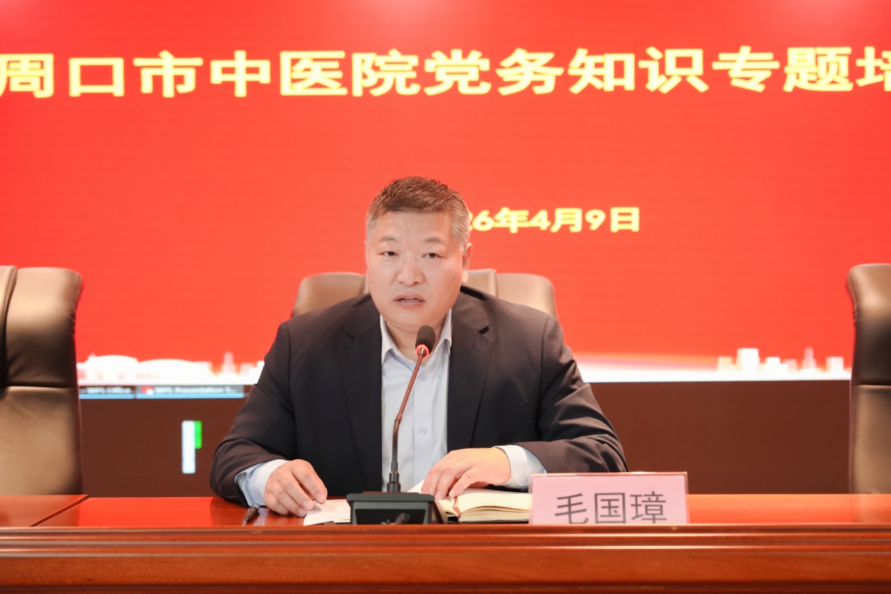 为深入学习贯彻新时代党的建设总要求和新时代党的组织路线,进一步夯实基层党建工作基础,提升党务干部政治素养与履职能力,推动党建工作与医疗业务深度融合,4 月9日,周口市中医院举办党务知识专题培训会。市直工委基层组织建设指导部部长武成军同志应邀授课,院党委副书记、院长毛国璋同志出席并作开班动员讲话,会议由院党委委员、副院长张军伟同志主持,各党支部书记、支部委员及医院党员干部参加培训。
